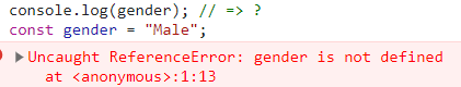 변수 name, 상수 gender가 정의되지 않았기 때문에 참조할 수 없다는 의미이다.