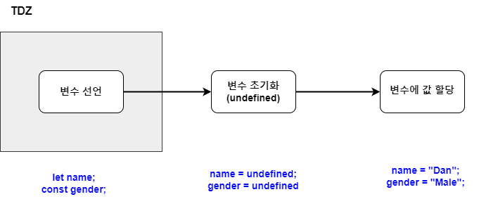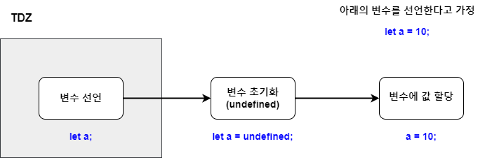TDZ에 존재하는 변수는 초기화되기 전까지 사용할 수 없다.