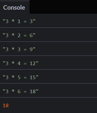 console.log(`${num} * ${dan} = ${num * dan}`);