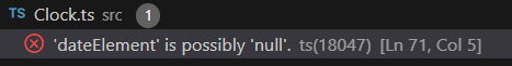 더 이상 dateElement 객체가 null일지도 모른다는 경고가 나오지 않게 됐다.