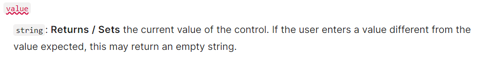 실제로 HTMLElement 문서를 확인해 보면 'value' Property에 대한 내용이 없지만