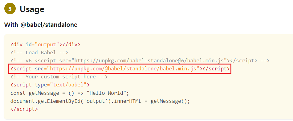 아래 링크로 들어가서 Babel을 설치해주고 (<script> 태그 복사 + 붙여넣기)