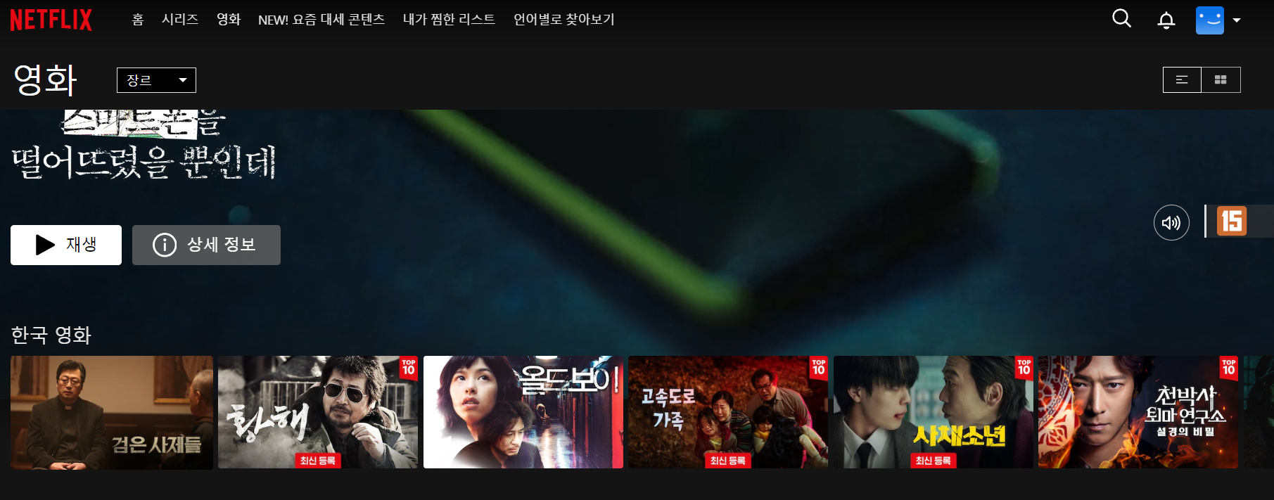 상단 메뉴에서 '영화' 버튼을 클릭해 보면, 별도의 화면 깜빡임 없이