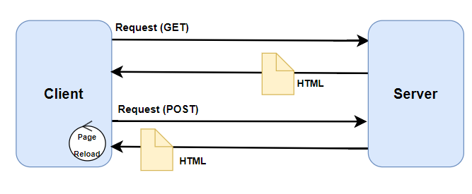 기본적으로 MPA 방식으로 만들어진 웹 사이트는 아래 이미지와 처럼 동작한다.