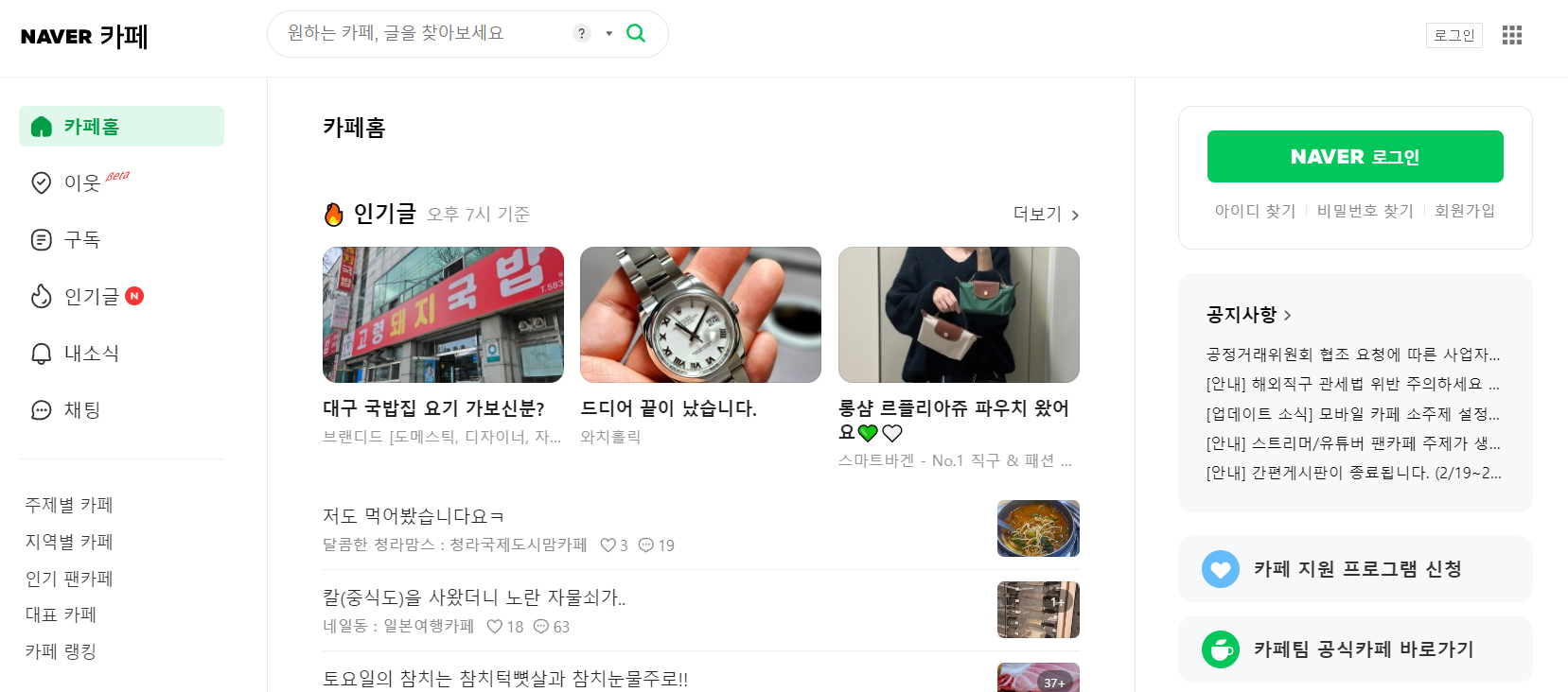 네이버 카페 페이지로 넘어가진 것을 확인할 수 있다.