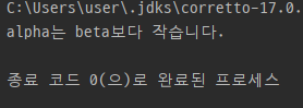 System.out.println("alpha가 beta보다 큽니다.");