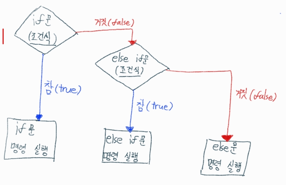 이 그림을 통해서 if, else if, else 문이 프로그램 상에서 어떻게 동작하는 지 감을 잡았을 것이다.