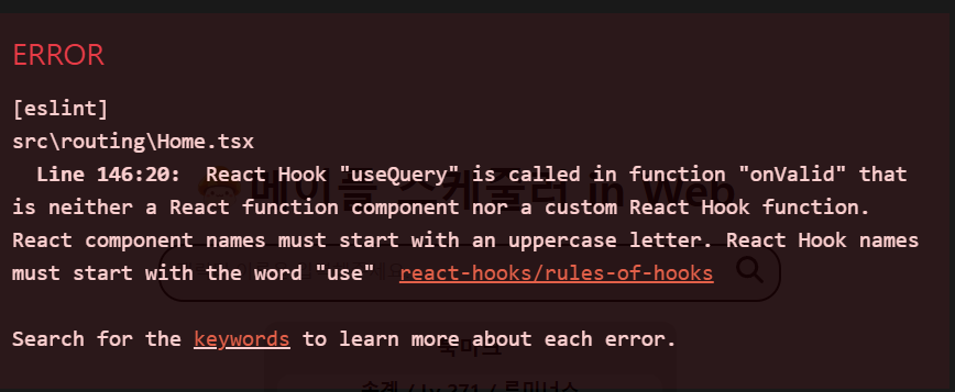 React Query의 useQuery Hook을 onValid라는 임의의 함수에서 호출하는 코드를 짰다가 보게 됐다.