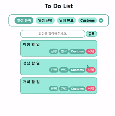 처음 일정을 만들고, 일정 아이템에서 '완료' 버튼을 클릭하면 해당 일정이 완료 처리가 되는 식이다.