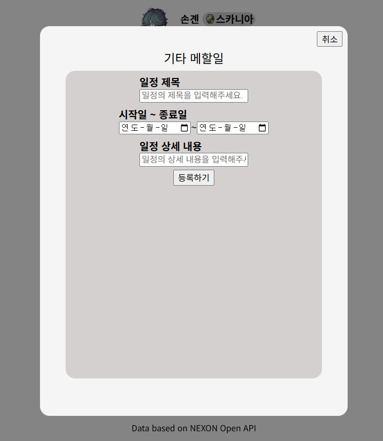 이때 보여주는 일정의 종류는 메이플스토리 인 게임 내의 메이플 스케쥴러를 참고하였다.