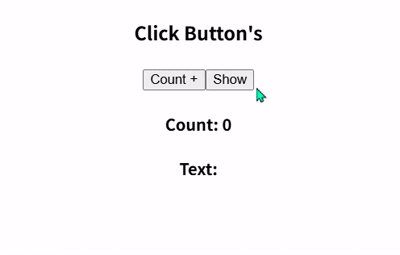 예제에서 'Count +' 버튼을 클릭하면, TestStore의 Count 상태의 값이 1 증가하고
