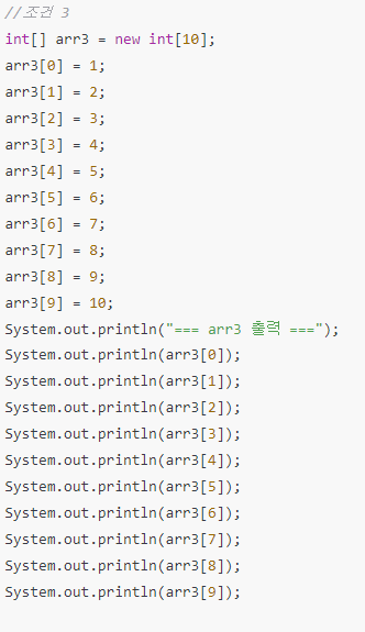 이제 여기서 '조건 3', int형 배열 변수 arr3 부분을 다시 확인해보자.