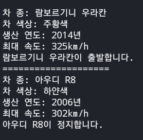 System.out.println("람보르기니 우라칸이 출발합니다.");