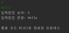 입력받은 숫자를 보여주고, 입력받은 문장 부분에는 공백만 나오는 것을 확인할 수 있다.