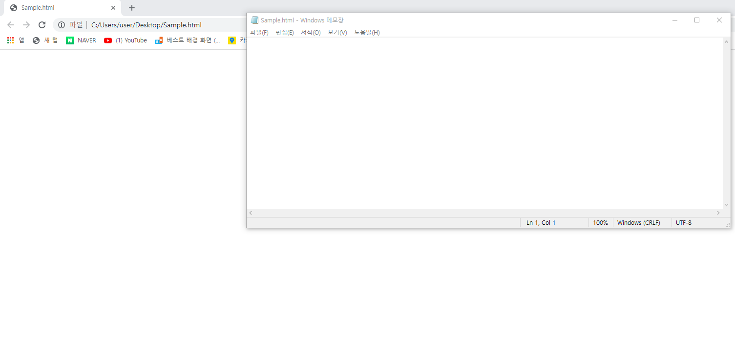 이 코드를 메모장에 복사+붙여 넣기를 하고, 파일을 저장해 보자.(파일 형식은 .html로 저장해야 한다.)
