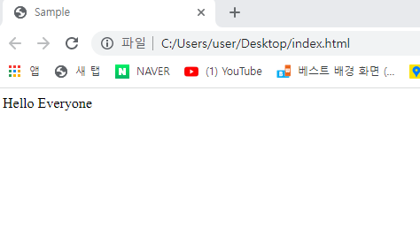 <body> 태그에 입력한 Hello Everyone이라는 문장이 브라우저 화면에 표시된 것을