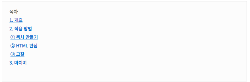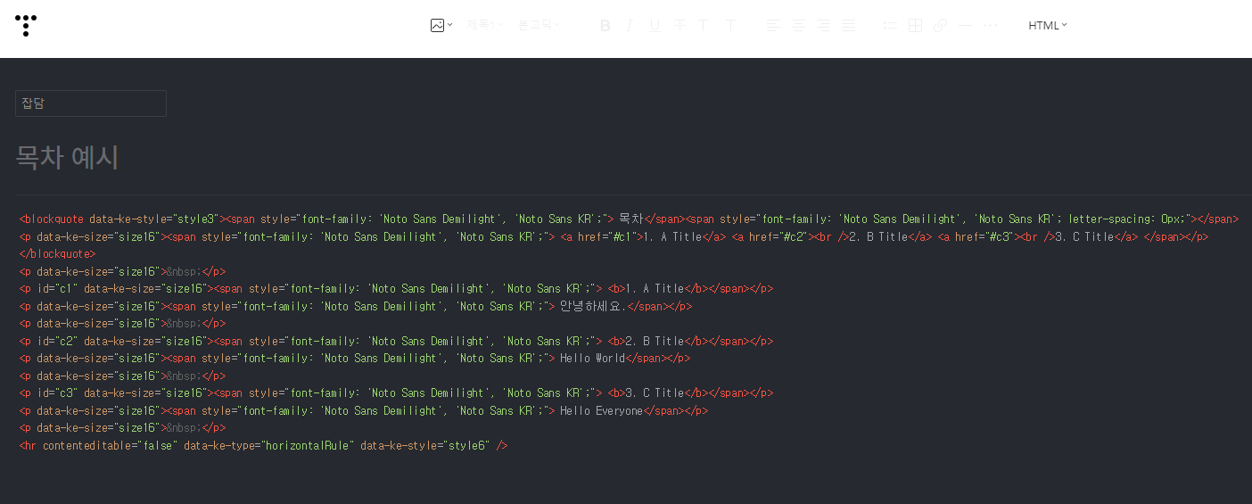 html을 활용한 티스토리 게시글에 목차 기능 넣기 정리가 완료됐다.