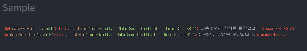 '제목 3'과 '본문 2'로 적용하고, 글쓰기 모드를 [기본모드]에서 [HTML]로 바꿔보니
