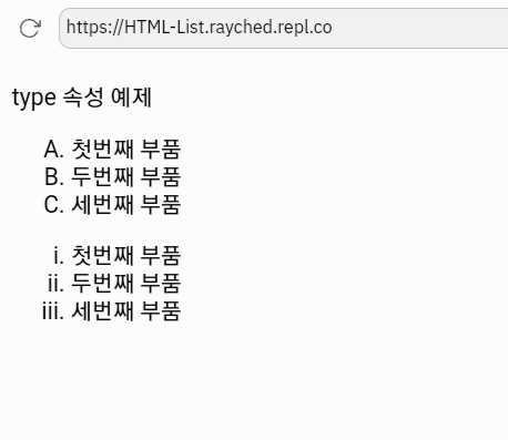 - 사용할 수 있는 타입 => '1' (숫자, 기본값), 'A' / 'a' (대/소문자 알파벳), 'I'/'i' (대/소문자 로마숫자)