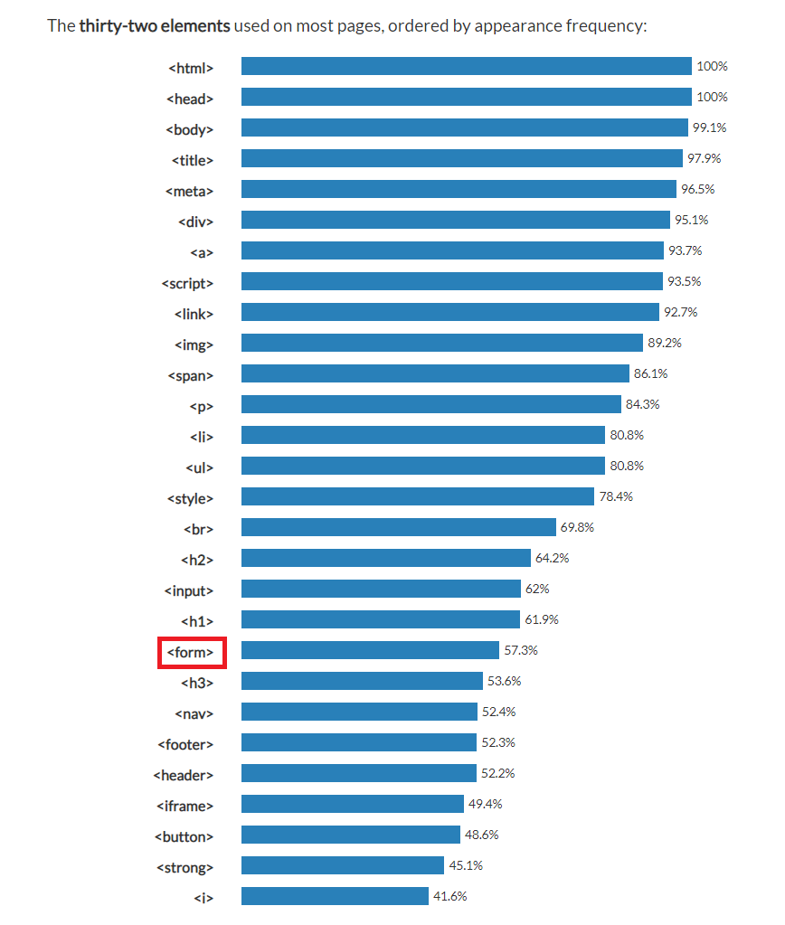 이번 게시글에서 다루는 것은 현재 57.3%의 사용률을 가진 <form> 태그에 관한 것이다.