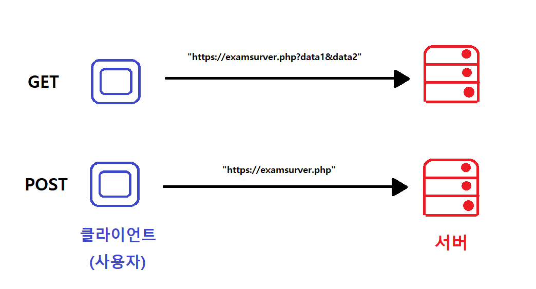 "https://(server's url)?(data1)&(data2)"와 같은 형식으로 form 데이터를 url에 첨부해서 서버로 전송한다.