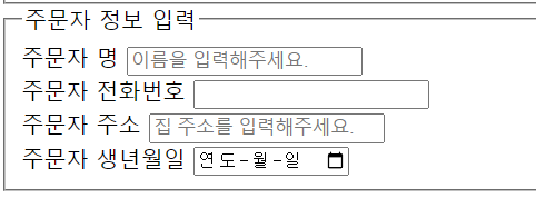 이름 <input type="text" name="StudentName" placeholder="이름을 입력해주세요."/><br/>